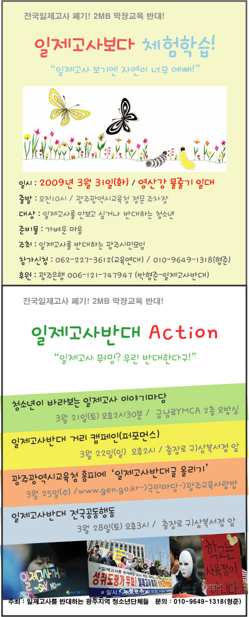 광주지역 일제고사거부 체험학습 안내