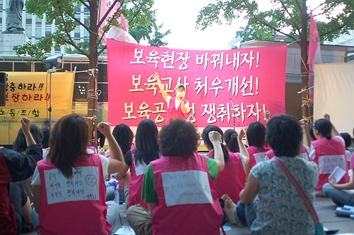 ![]() 전국보육노동조합이 ‘보육공공성 확보와 보육노동자 노동기본권 쟁취’를 위한 대정부요구안을 가지고 여성가족부에 교섭요구투쟁을 진행하고 있다. 오는 7월 31일부터 여성가족부 앞에서 대규모 노숙농성투쟁을 진행할 예정이다.