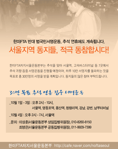 | 한미 FTA 저지 한가위 귀향선전전 | ||||||||