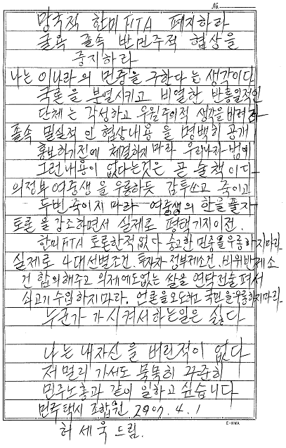 | 한미 FTA 저지, 허세욱 동지 쾌유 기원 ! | ||||||||