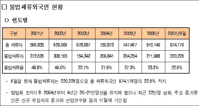 고용허가제 정책 실패를 은폐하기 위한 살인적 단속·추방 즉각 중단하고 노동비자 도입하여 미등록 이주노동자 합법화하고 인간다운 삶을 보장하라 현재 22만여 명으로 추산되는 미등록 이주노동자들은 오늘도 3D산업의 열악한 일터에서 밤낮으로 땀 흘려 일하고 있다. 장시간 노동과 위험한 노동환경, 부당해고, 최저임금, 임금체불, 성폭력 …… 이러한 차별과 폭력은 기본이고, 여기에 한국정부는 이주노동자에게 불법체류자라는 딱지를 붙여 범죄자로 몰았다. 폭력적인 단속으로 이주노동자의 인권마저 빼앗고 있다. 정부가 강행한 고용허가제와 단속추방 정책은 수많은 이주노동자들의 생존권을 박탈시키고 있을 뿐 아니라 살인적 폭력으로까지 번지고 있다. 그 실상은 실로 참혹하고 추악하기까지 하다. 지난 2월11일 새벽 여수 외국인‘보호소’ 화재참사로 10명의 이주노동자가 목숨을 잃고 17명이 부상을 입은 사건을 비롯해, ‘단속’이라는 미명 하에 자행된 한국정부의 폭력으로 수많은 이주노동자들이 살해당하고 수십만 명이 강제로 추방당했다. (별첨자료 1 참조) 고용허가제를 비롯한 한국 정부의 이주노동자 정책은 그 자체가 실패작일 뿐 아니라 이미 국제사회의 지탄을 받고 있다. 지난 3월20일, 호르헤 부스타만테 유엔 이주자 인권 특별보고관이 “산업연수생 제도(ITS)와 고용허가제(EPS) 모두 이주노동자의 지위를 더욱 취약하게 만드는 등 중대한 결함이 있다”는 보고서를 유엔 인권이사회 제4차 총회에 제출하기도 했다. 그러나 법무부는 지난 7월29일 고용허가제의 안정적 정착을 위해 8월부터 연말까지 불법체류 외국인을 집중 단속을 실시할 방침이라고 밝혔다. 2004년 8월부터 시행된 고용허가제는 이주노동자들의 취업기간을 3년으로 하되 미등록 이주노동자들을 강제추방하는 것을 골자로 한 것인데, 시행 3년째가 되는 올 8월부터 미등록 이주노동자가 급증할 것으로 예상되는 등 정부 정책의 실패가 분명해지자 이를 은폐할 목적으로 반인권적 폭력단속을 강행하겠다는 것이다. (별첨자료 3 참조) 노무현 정부가 이토록 부끄러운 참사에도 불구하고 이주노동자에 대한 기존 정책을 바꾸지 않으려는 이유는 간단하다. ‘불법체류’라는 딱지를 붙여 규제하는 척 하면서 뒷구멍으로는 미등록 이주노동자의 약점을 활용하여 돈벌이를 하려는 기업주에게 무한한 착취의 자유를 열어주기 위함이다. 미등록 이주노동자들에게 ‘불법’ 딱지를 붙임으로써 사용자에 대한 저항과 항의의 권리를 박탈하여 이주노동자들을 저임금 장시간 노동자로 만들어낸 후, 한국 노동자들의 고용과 임금을 공격할 목적인 것이다. 현재 정부는 노동부와 연계해 42,924개의 사업장을 돌며 “미등록 이주노동자 고용을 하지 말 것”을 사업주에게 요구했다. 이 과정에서 출입국과 노동부는 각 사업장의 미등록 이주노동자 고용 실태를 파악했고, 이후 단속 리스트를 작성해놓은 상황이다. 이 결과 전국적으로 수많은 미등록 이주노동자들이 벌써부터 해고되고 있는 현실이다. 지난 2003년의 대규모 단속 때 해고와 강제추방의 두려움으로 많은 이주노동자들이 절망 속에서 자살했던 것을 벌써 잊었단 말인가? 불안에 떨고 있는 이주노동자들은 돈을 모아 피난처를 찾고 있는 실정이다. 마치 “안네의 일기”에 나오는 나찌 정국에서의 유태인의 생활상과도 같은 모습이 21세기 한국에서 펼쳐지고 있다. 정부는 말로는 인권침해적 요소를 없앤 단속을 하겠다고 하지만, 공장 및 주택 등 건조물 무단 침입은 다시 시작될 것이다. 정부 정책 실패를 은폐하기 위해 곳곳에서 ‘인간사냥’이 시작될 것은 불을 보듯 뻔하다. 지금 이주노동자들에게 절실히 필요한 것은 고용허가제와 같은 기만적인 정책과 미등록 이주노동자 단속·추방이 아니라, 이주노동자들이 자신의 권리를 보장받기 위해 저항할 수 있는 권리를 보장하는 것이며, 그 출발점은 노동허가제(노동비자) 도입을 통한 미등록 이주노동자들의 합법화에 있다. 우리는 확신한다. 오만한 정부의 범죄가 한국의 수십만 이주노동자들의 의식 속에 ‘저항’이라는 꺼트릴 수 없는 작은 불꽃 하나를 심어놓았다는 사실을! 그리고 그것은 한국 뿐 아니라 전세계의 억압받고 탄압받는 이주노동자들 모두가 공유하고 있는 불꽃이라는 사실을! 지난해 5월, 제국주의 국가인 미국의 심장부에서 수백만의 이주노동자들이 행진과 경제적 보이코트에 나선 것을 전 세계가 지켜보았다. 주요 도시들에서, 주들에서, 그리고 국경지역에서 이주노동자들의 행진은 경제를 마비시킨 바 있다. 미국 의회가 미등록 이주노동자들을 중범죄인으로 낙인찍고 그들을 돕는 모든 이들을 범죄자로 취급하려는 법안을 내놓았기 때문이다. 이주노동자들은 이 땅 “가장 낮은 곳에서 일하는 노동자들”로서, 비정규직 노동자들 중에서도 가장 밑바닥의 삶을 살아왔다. 따라서 우리 비정규노동자들은 “이주노동자들의 권리를 보장받도록 하는 것이 곧 비정규노동자들의 권리보장으로 이어진다”는 인식을 갖고 이주노동자들에 대한 단속·추방에 항의하는 활동을 전개할 것이다. 사회적 약자인 이