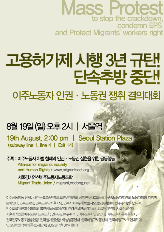 | 8월 19일, 이주노동자 인권과 노동권 쟁취 결의대회 | ||||||||