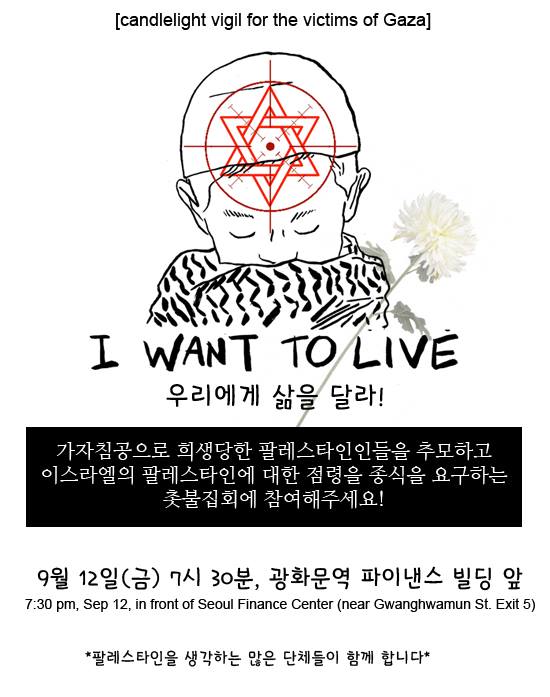 공지[2014.9.12.] 이스라엘의 가자침공으로 희생당한 팔레스타인 추모, 점령 종식 요구 촛불집회
