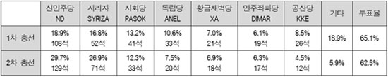 [표] 그리스 총선 결과. 출처: Parties and Elections in Europe
