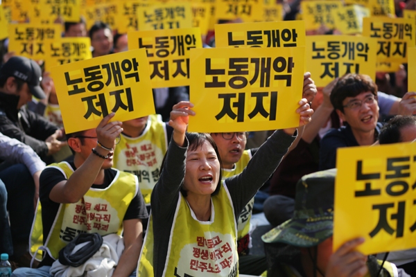 무엇보다 국회가 법안 처리로 씨름하고 있는 것처럼 보이는 와중에, 개별 현장에서 구조조정의 물살이 몰아칠 우려가 크다. 조선·철강·해운·석유화학 등 중공업분야에 대한 구조조정이 이미 현대중공업은 3,000여명의 인원을 감축하겠다고 밝혔다. 노동개악에 맞서는 투쟁이 단순히 정부와 국회를 상대로 한 압력행사 정도로 여겨져서는 안 될 일이다.