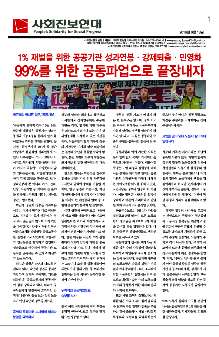 1% 재벌을 위한 공공기관 성과연봉·강제퇴출·민영화 99%를 위한 공동파업으로 끝장내자