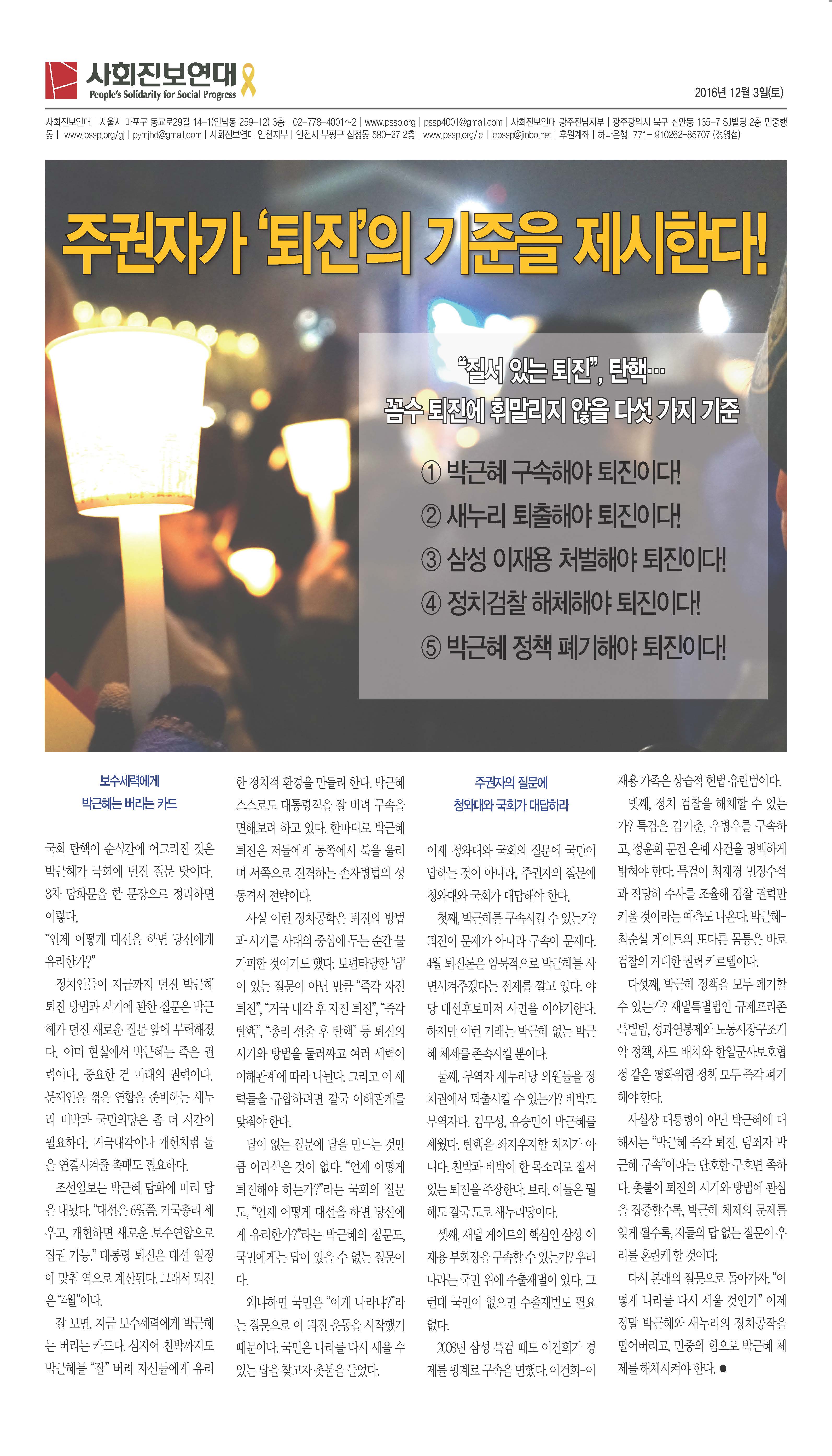 1면 - 주권자가 '퇴진'의 기준을 제시한다!