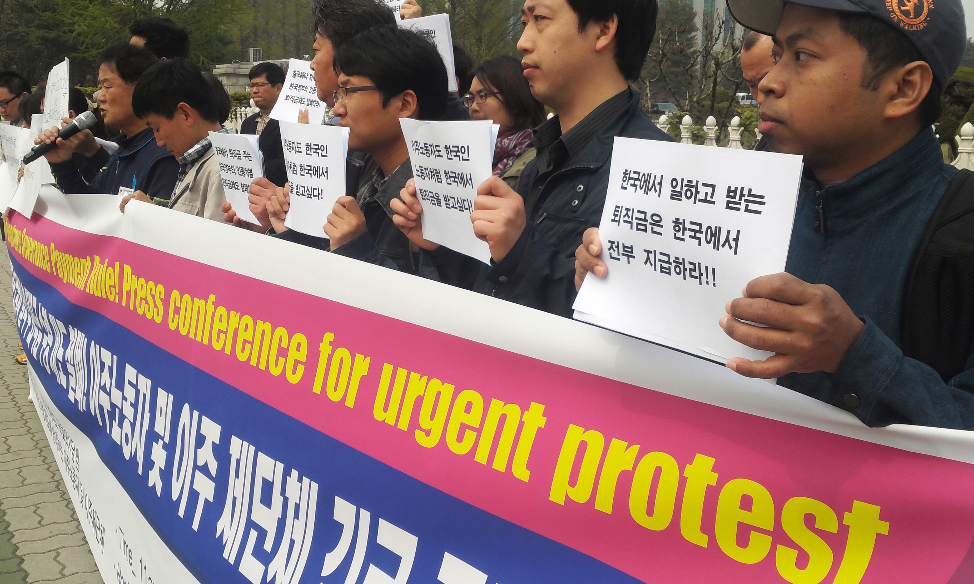 이주노동자 출국 후 퇴직금 수령 제도 철회를 위한 기자회견 참가자 일동