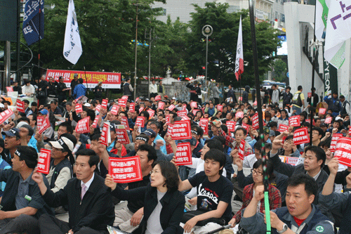5.22 인천시민노동자 결의대회 -박종태 열사의 뜻을 계승하자!! 5월 22일 금요일 저녁 6시 부평역 광장에서는 오래 간만에 노동조합, 진보정당, 사회시민단체 공동주최로 ‘인천시민 노동자 결의대회’가 열렸다. 경제위기와 지배세력의 책임전가로 인해 사지로 내몰리고 있는 민중들의 생존권을 쟁취하기 위해 700여명이 모였다. 이날 집회 참가자들은 이명박 정권과 자본의 탄압에 죽음으로 맞선 박종태 열사의 정신을 이어받아 “총고용 보장! 민중생존권 쟁취! MB악법 저지”하기 위한 강력한 투쟁을 결의했다. 2009.05.26 주제어 태그